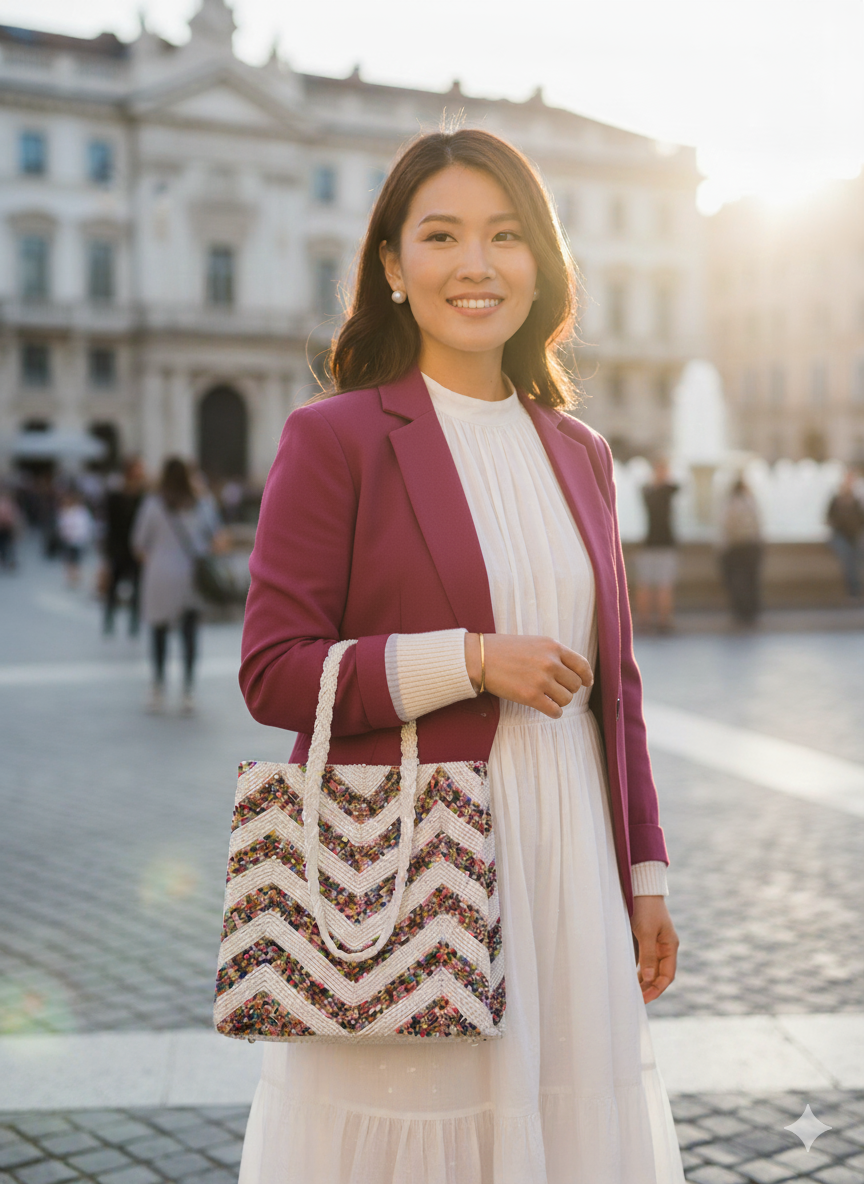 Rainbow Zigzag Beaded Handbag