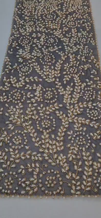 Handmade Beaded Table Runner Set (Grey Gold Pearl)