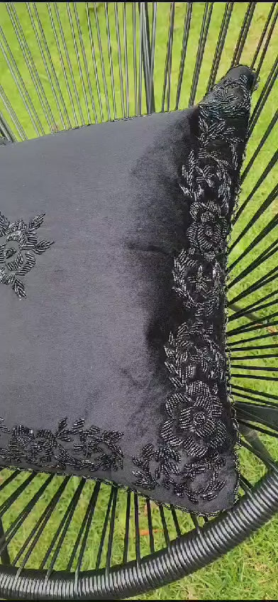 Crafted from high-quality velvet material, the Handmade Velvet Cushion Cover (Black on Black) features: