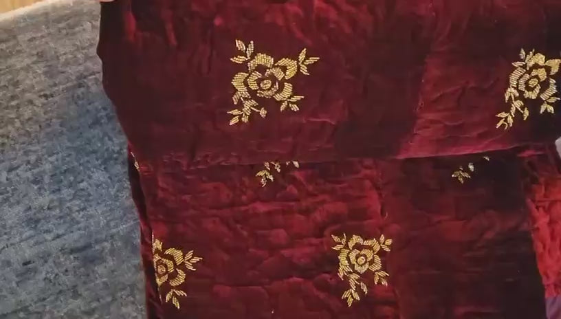 Maroon and Gold hamdmade beaded bedset (Design 2)